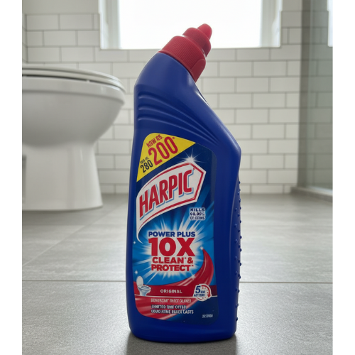 Harpic toilet cleaners typically use an acidic formulation to break down mineral and organic deposits. The key ingredients and features include